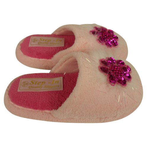 Girls Kids Furry Sequin Flower Soft Feathers Mule Mules Slippers Size UK 10 – 2