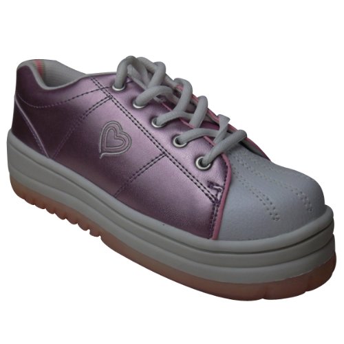 Trainers (Pink Girls Kids LACE Retro School Shoes size Skate Trainer TRAINERS
