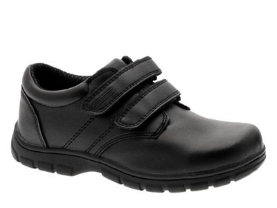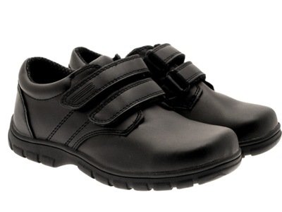 School shoes Black Boys Double FAUX Formal Junior Kids LEATHER School Shoes SIZES Velcro